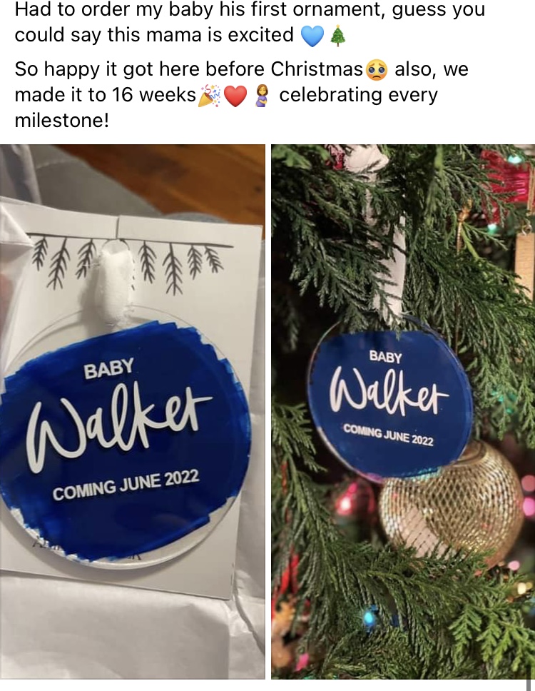 I would encourage you to buy a Christmas ornament with the name of your preborn child engraved on it or to buy a “1st Christmas ornament” or an ultrasound picture ornament of your preborn child because your child’s first Christmas may be in utero so they need a “1st Christmas ornament,” and this can reaffirm to your child outside the womb of the Biblical truth of our personhood beginning at fertilization for babies in utero. 🙂 See above on the Baby Walker ornament picture what this mom speaks of for her preborn son on FB saying, “Had to order my baby his first ornament, guess you could say this mama is excited…” Her words speak to two main points which are 1. that a baby becomes a person the moment of fertilization and the second point is that sometimes children who are inside the womb may celebrate their first Christmas inside the womb. I love how she said how she bought her baby his first ornament. I love how she called herself “mama” as knowing she is his mother from the moment he was made and not thinking she is a “mother-to-be” til he is born.